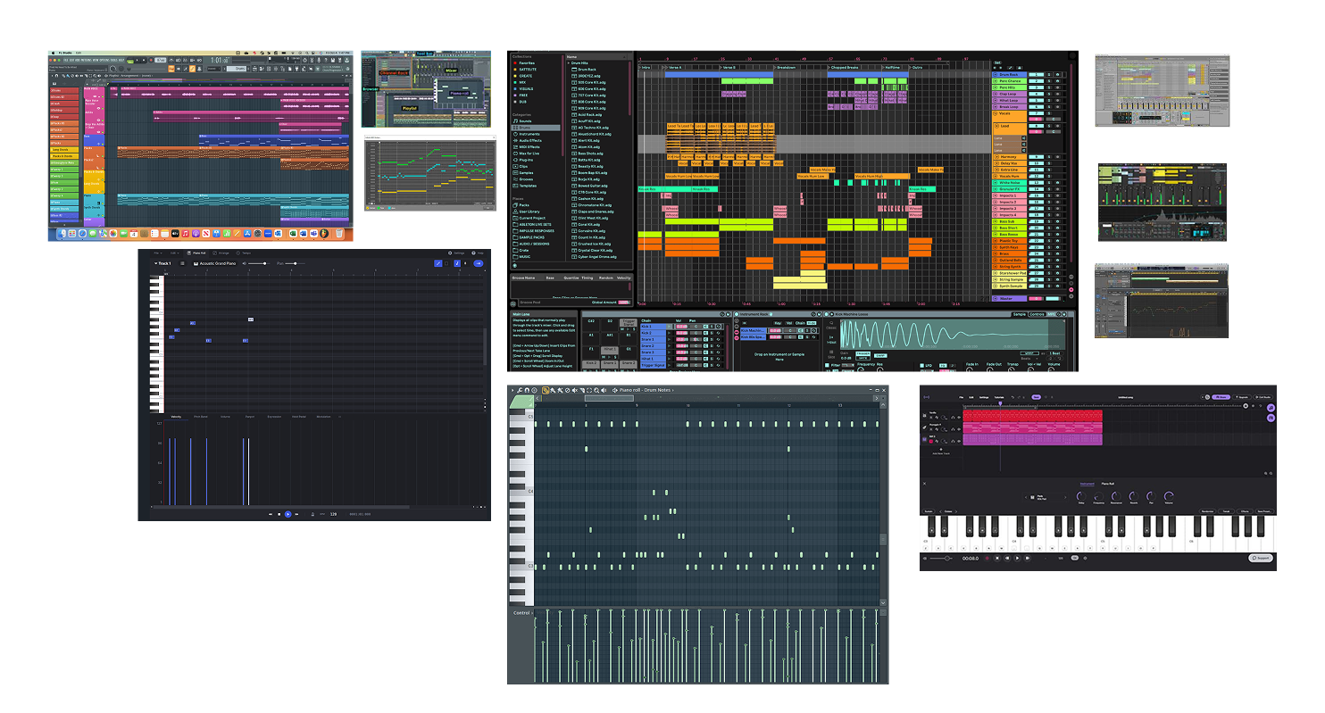 to full professional DAWs. Test different DAWs interaction note placing, importing. Broke down common their visual architecture and flow.