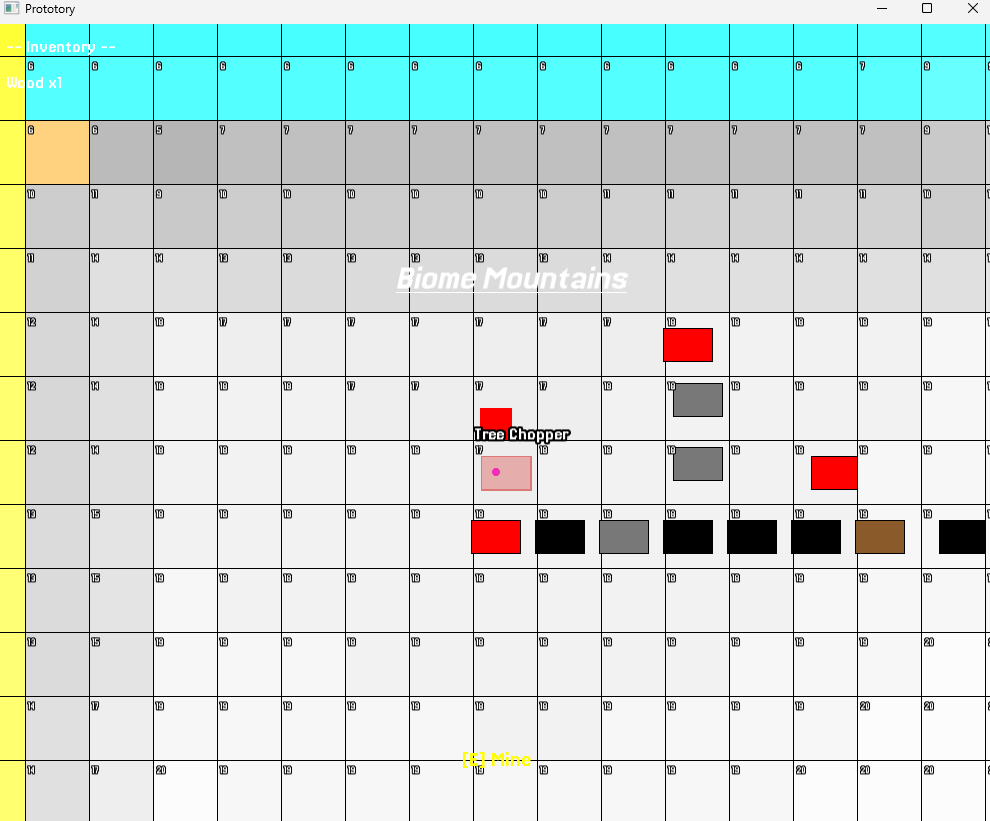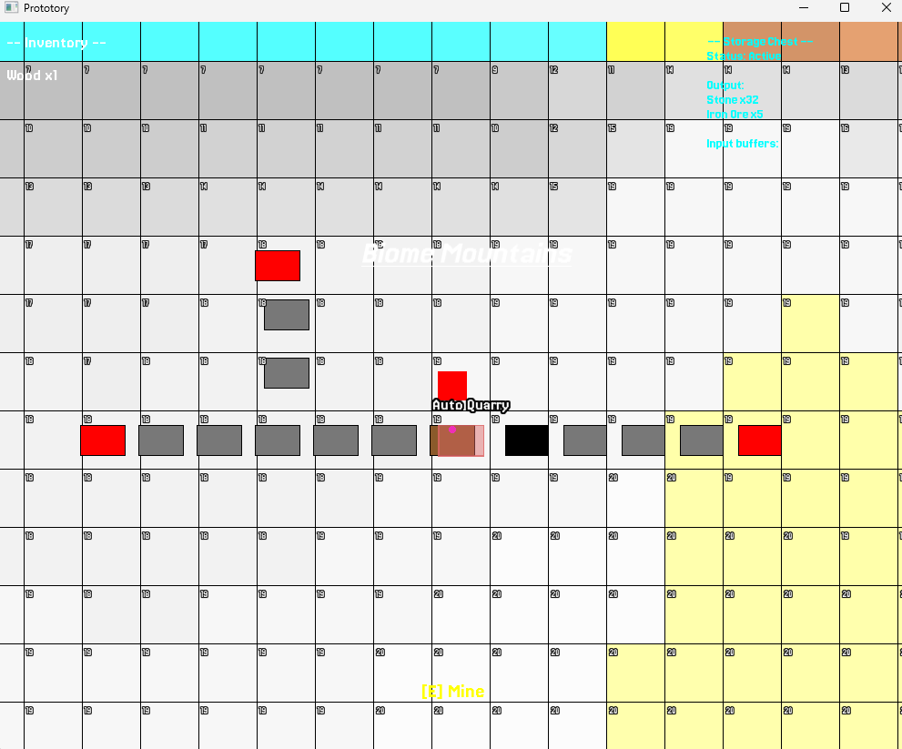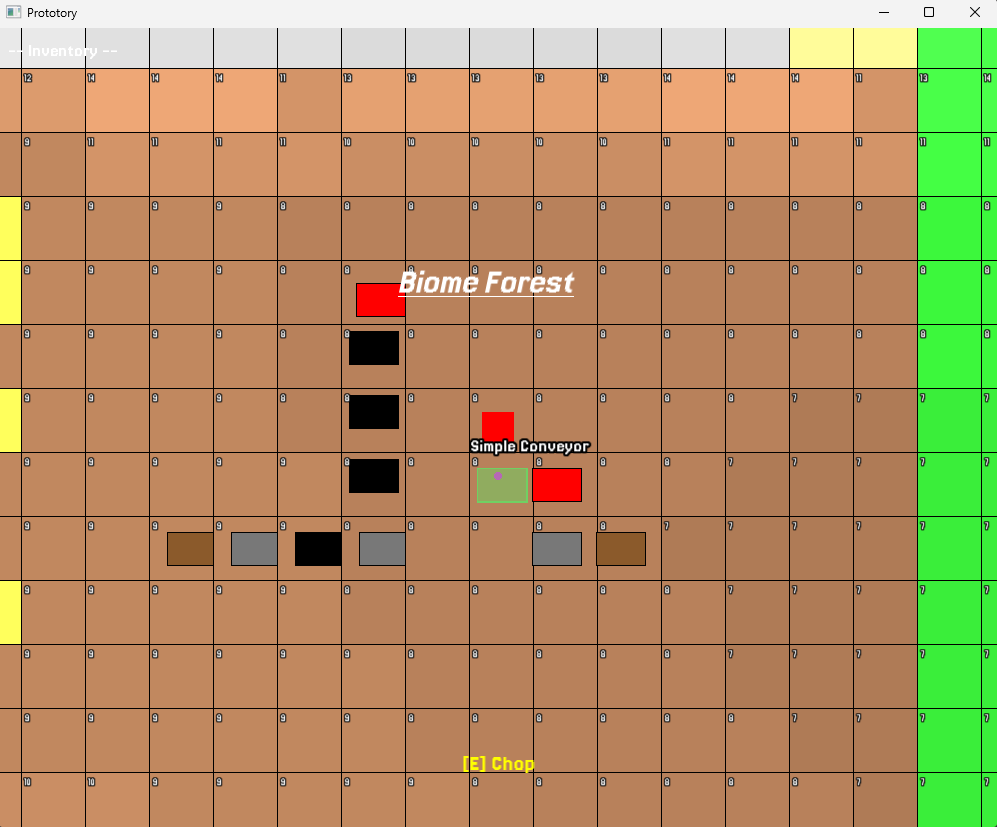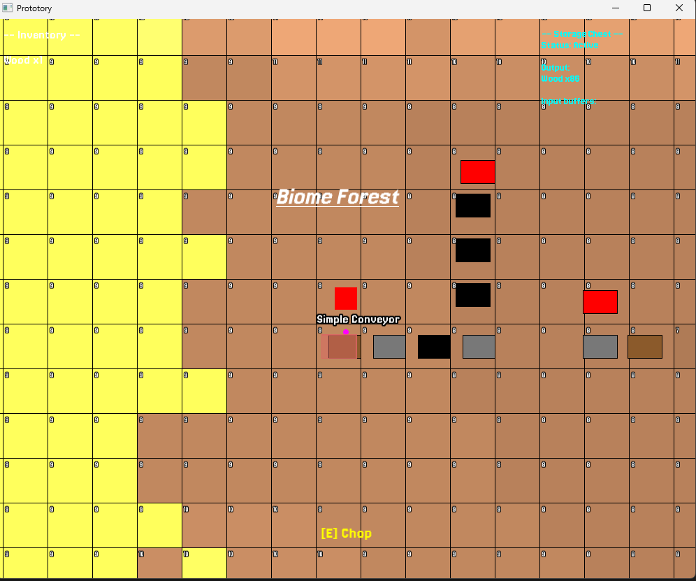 Inspired by Factorio & Satisfactory; Prototory explores how and the why when we investigate how to organise, construct and move data around a procedurally generated world. The player has input, the world is generated by a deterministic seed system and chunking logic(Hence some blocky terrain), the goal was to fuse Procedural World Generation with a data-driven architecture, where resources are accrued at the pace the player wishes to play at, and the player can build machines that interact with the world and each other.